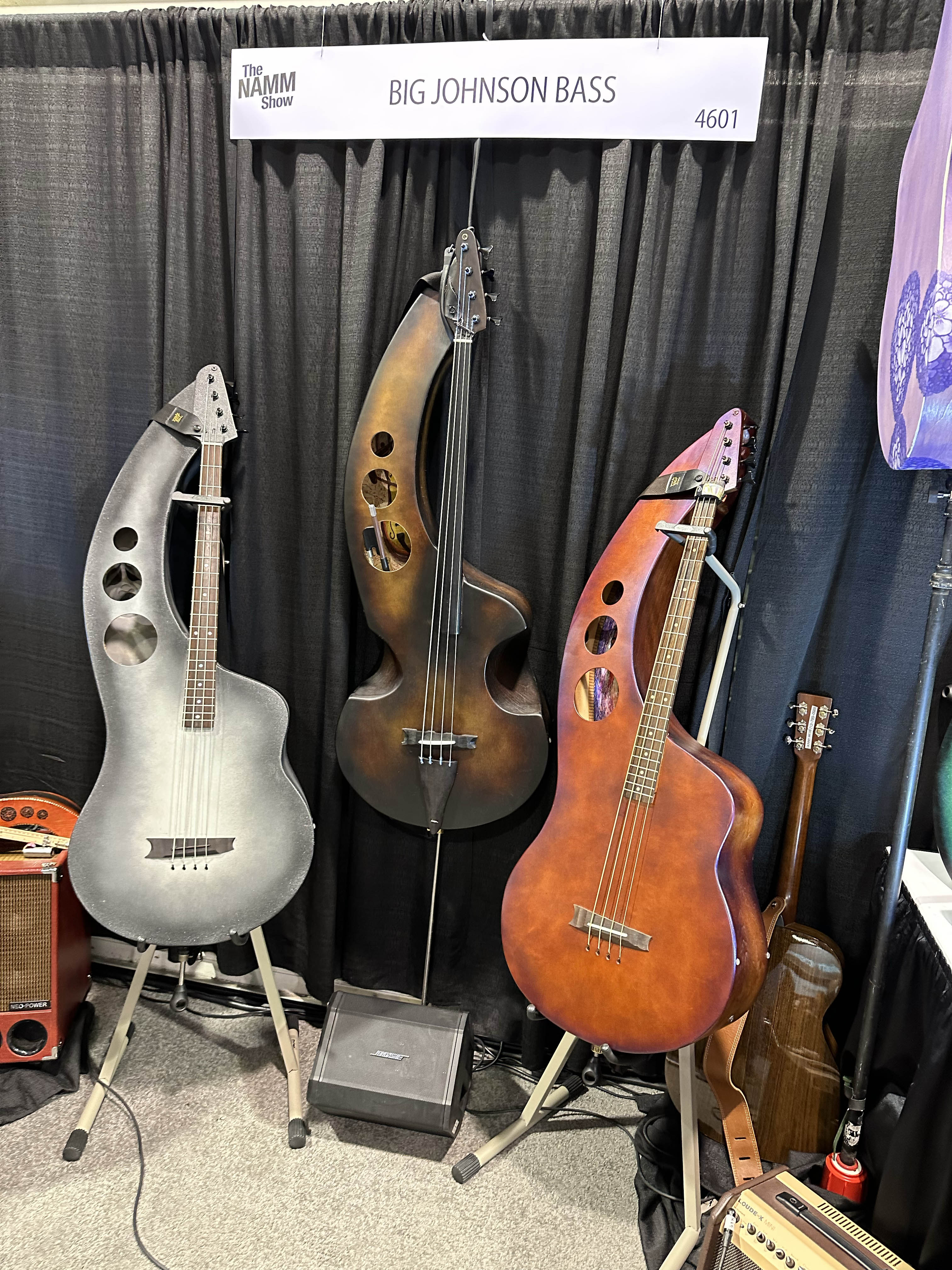 | Here are Big Johnson Basses. These are acoustic double basses that are clearly designed for people who normally play electric bass – no arco playing here! |