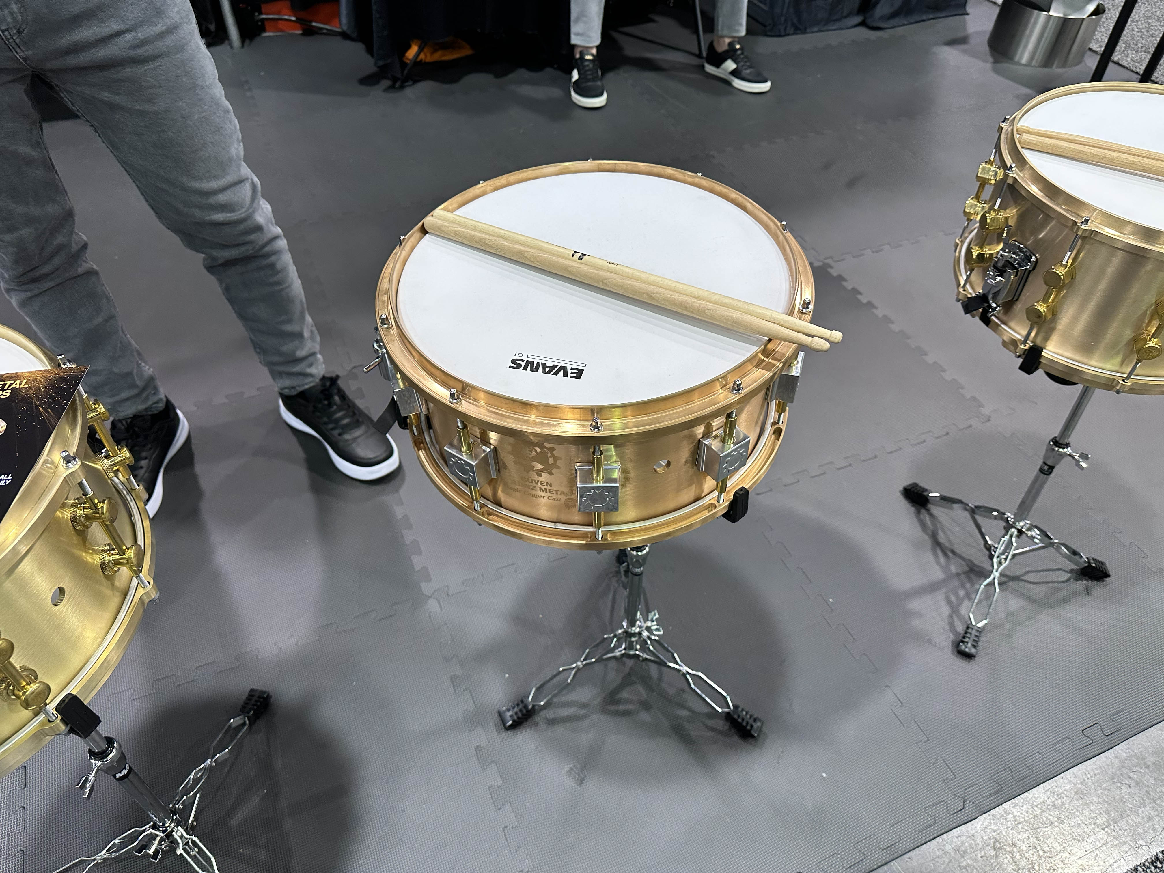 | A company called Guven presented a set of drums that are manufactured from very solid and think metal. I played this snare drum and it sounded fine. However, it is VERY heavy. This is not something I would want to travel with to gigs/ |