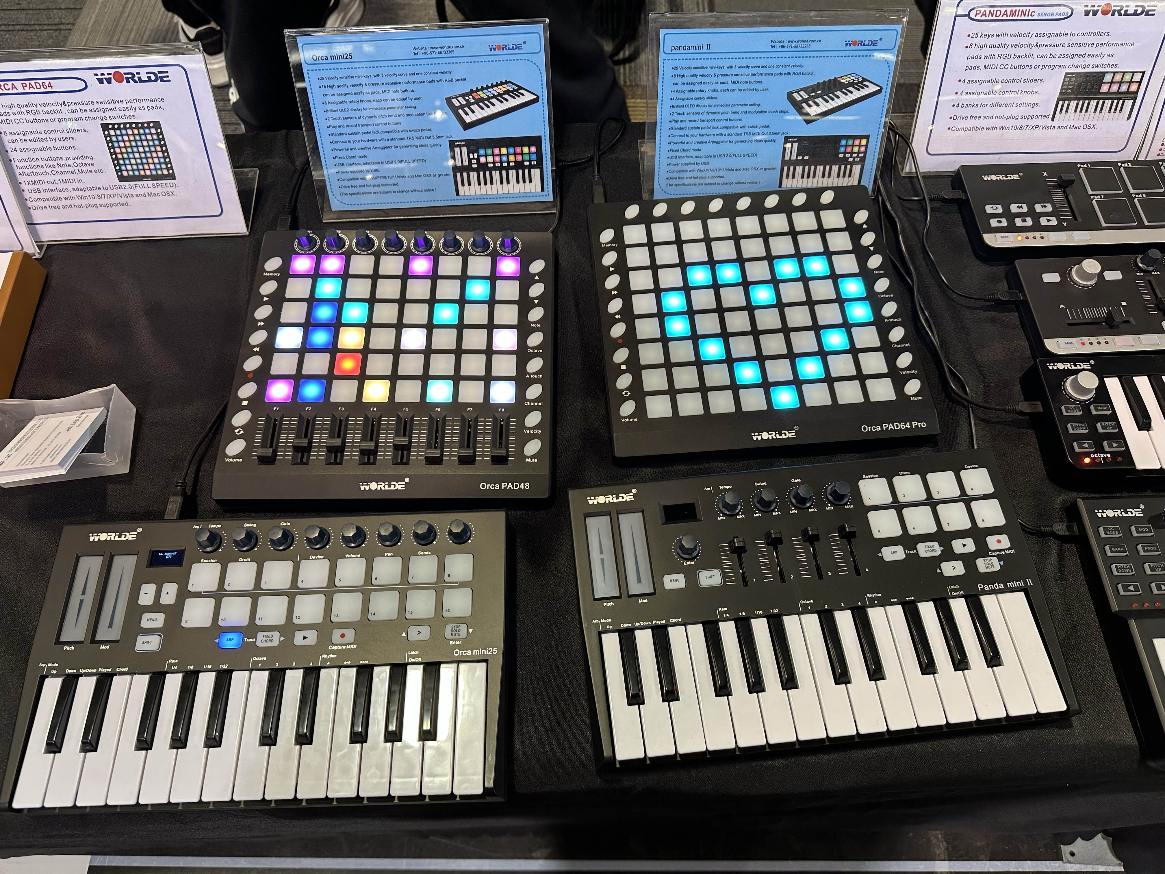 | These MID controllers (the square button arrays, that is) are form Wolrde, which is also Chinese. They are plug compatible with the Launchpad devices and program in the same way. When I asked if they have any additional features that make them different hat Launchpad, I was told "no." I don't understand... |