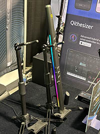| Here is the Robkoo woodwind MIDI controller. Since I was the only one at this booth who can play woodwinds at the time, I demonstrated it for a while. The funny led array along the side and be used for things like portamento. I asked if they had a NAMM discount and was told that if I posted something about it to social media sites, I could get $10 off. I passed on this unremarkable discount! |