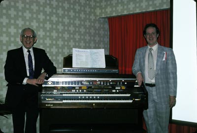 Ralph and Les Deutsch with the new digital ADEPT Kawai DX1800 at the 1982 Winter NAMM Show