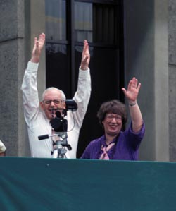 Ralph and Charlotte Deutsch signaling Les’ diploma